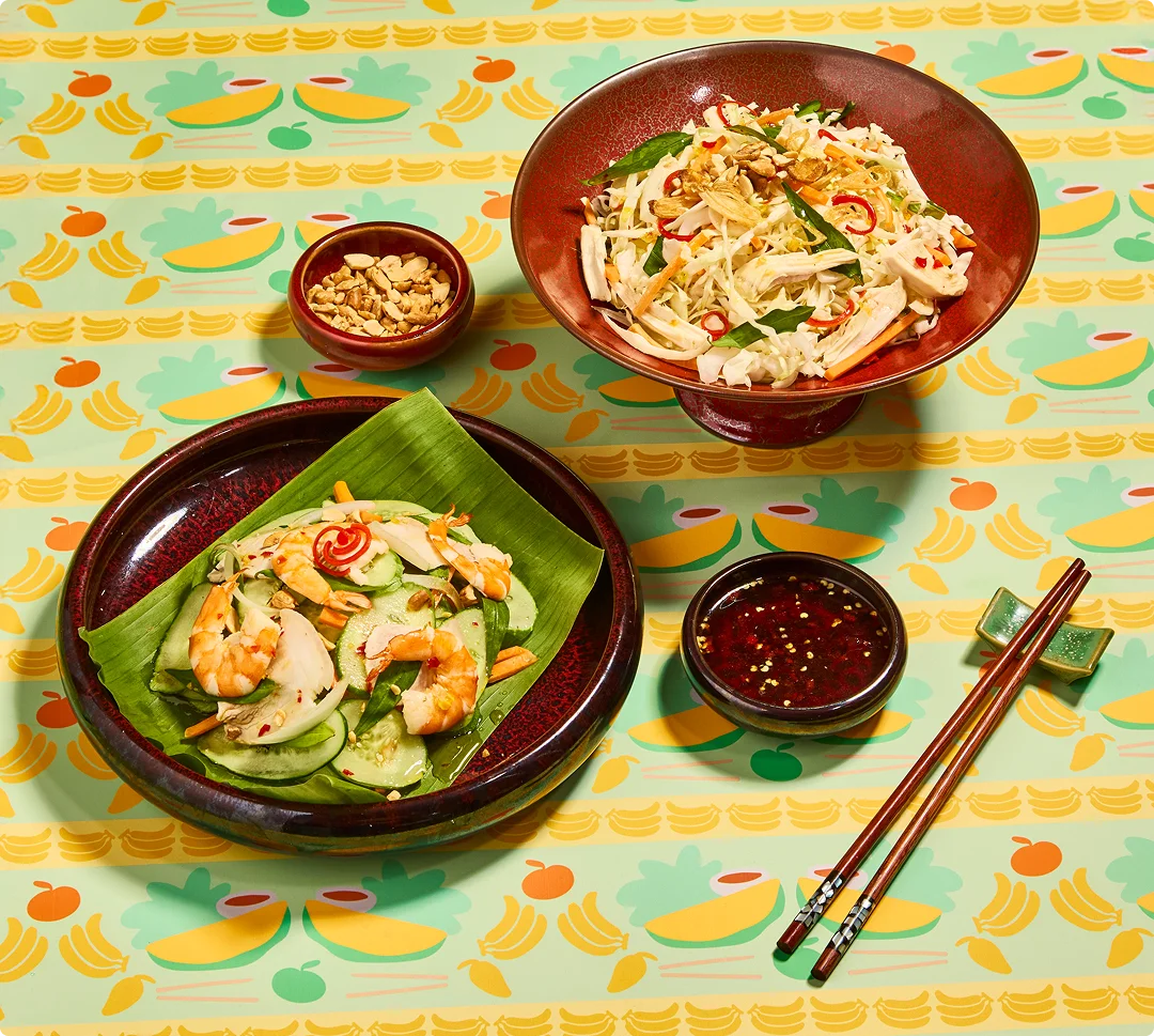 CUCUMBER AND CARROT SALAD WITH PRAWNS AND PORKS